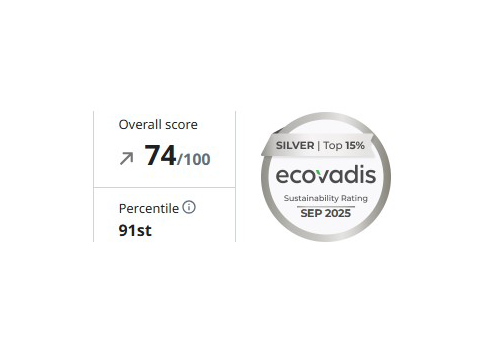 Vi är stolta över att återigen ha tilldelats EcoVadis Silver för vårt hållbarhetsarbete – och att vi dessutom förbättrat vårt resultat från 70 till 74 poäng. Det innebär att vi placerar oss bland de 15 % bästa företagen globalt som granskas och utvärderas av EcoVadis.