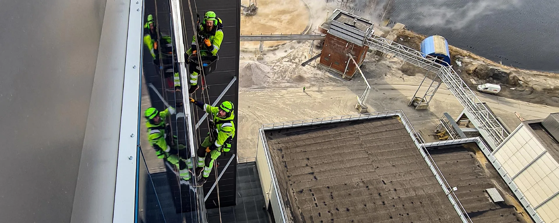 För arbete på riktigt hög höjd och på svåråtkomliga platser kan industriellt reparbete (rope access) vara den arbetsmetod som är mest lämplig. BERGNÄSET erbjuder reparbeten som ett kostnadseffektivt och ändamålsenligt komplement till ställningsmontage för inspektioner, reparationer och underhållsinsatser. Oavsett vilken arbetsmetod vi tillämpar har säkerheten alltid högsta prioritet.